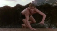 With Laverne still sleeping, he begins caressing her body and fondling her breasts. She soon awakes screaming in agony as the creature has seeped through the cracks and has a hold of her face, much to Randy's horror. As the blob pulls her off the raft and begins consuming her, Randy sees the opportunity to jump off the raft and swim to shore. He ultimately makes it, barely escaping the creature and yells "I beat you!" However, the creature rises up from the water like a wave and engulfs Randy. The blob returns to the lake, with no evidence of the four students even visiting the lake other than their car which was left running the whole time. A no swimming sign is also shown.