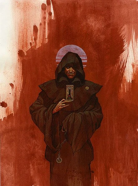 It is there that Roland finally catches Walter and they palaver. Walter foretells Roland's future using a personalized deck of tarot cards and tells him that he must wait for the time of the drawing (The time when Roland would summon Odetta Holmes and Eddie Dean and eventually Jake Chambers again, to help him in his quest). After this, Walter shows Roland a vision of multiple levels of the Dark Tower. Roland remains asleep for hundreds of years after his vision and Flagg escapes him and places bones in his black clothing to make it look like he died long ago.