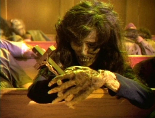 Plague victims rotting in a church.